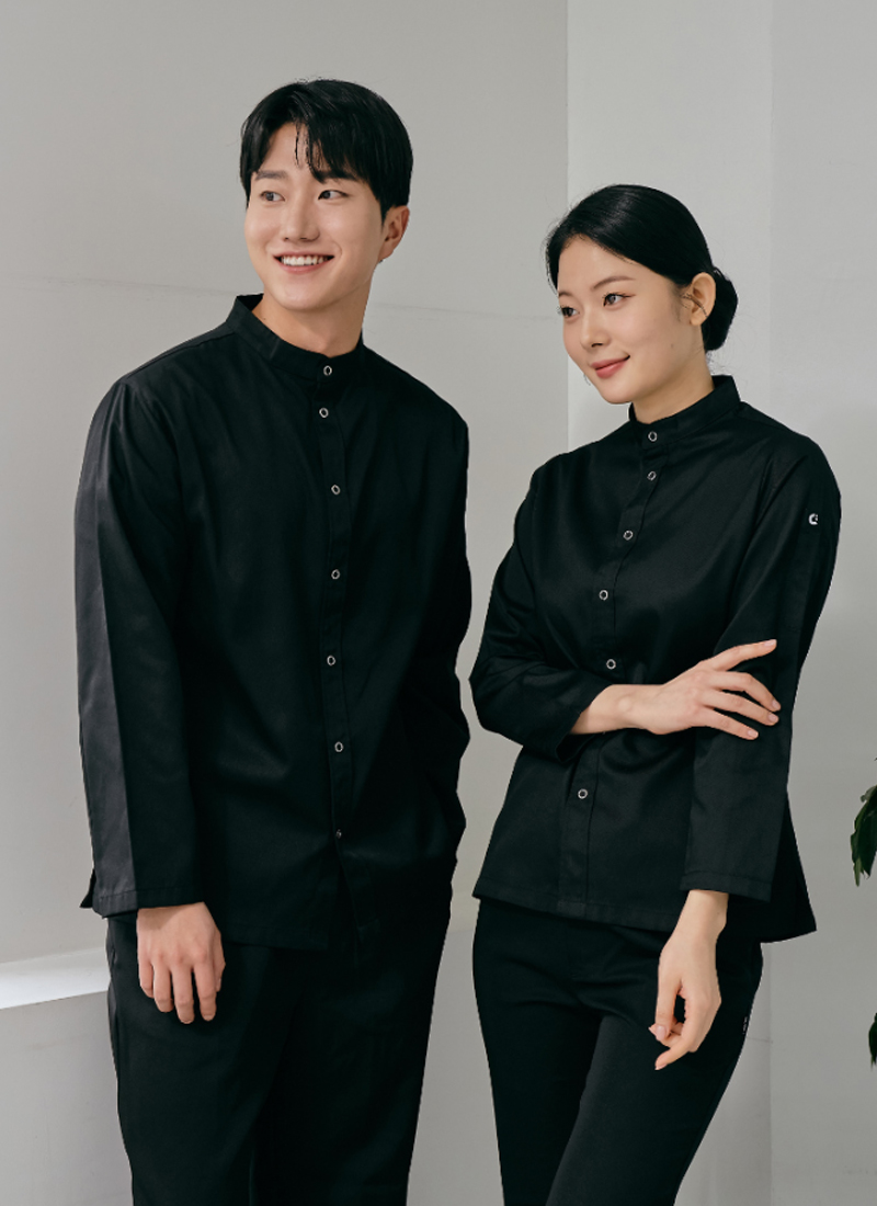 스냅단추를 안쪽으로 숨긴 히든스냅 셔츠형 조리복 출시!